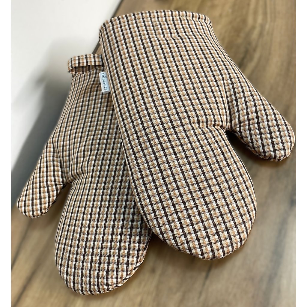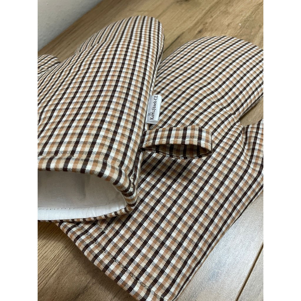 Kuchyňské chňapky 1 pár - kávově hnědé, s našitým čtyřlístkem
