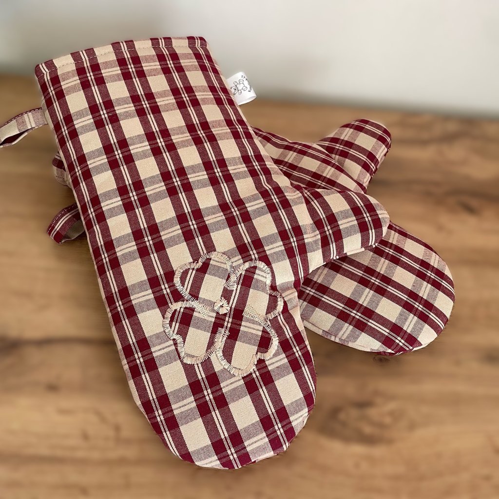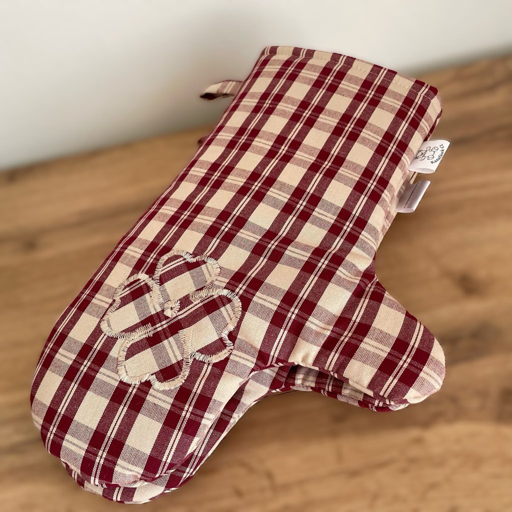 Kuchyňské dlouhé chňapky 2ks s magnetem-čtyřlístek, vínové káro