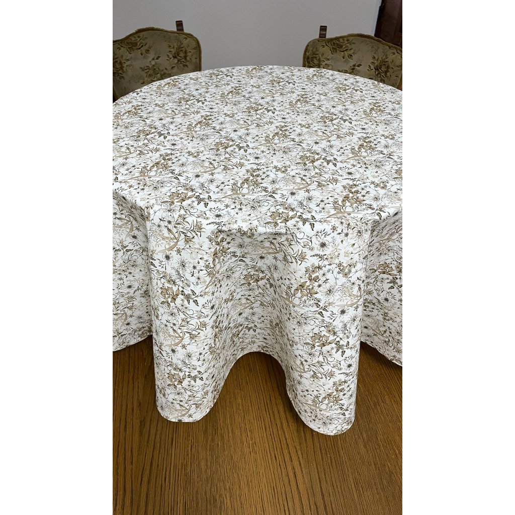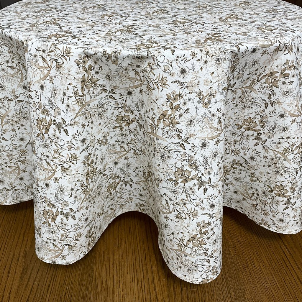 Kulatý bavlněný ubrus v přírodních barvách – průměr 135 cm jemný květinový vzor v hnědých odstínech
