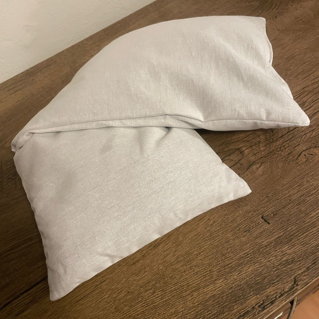 Složení : povlak 100%bavlněné bílé plátno s výplní levandulových sušených květů a sušené pohankové slupky. UPOZORNĚNÍ - Nahřívací výplň pohankovými slupkami a levandulí NELZE PRÁT!!