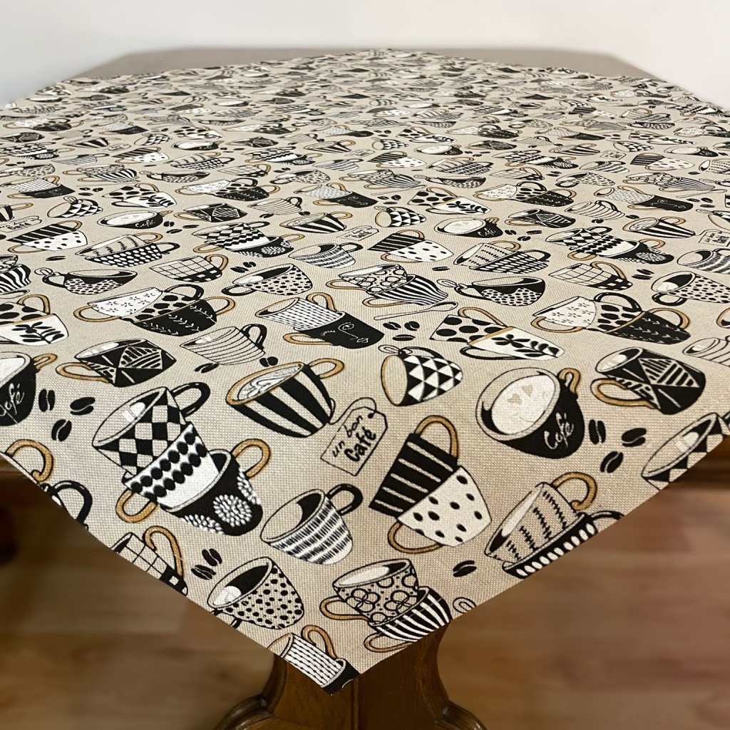 Ubrus 95 x95 cm - režný vzhled s kávovými šálky